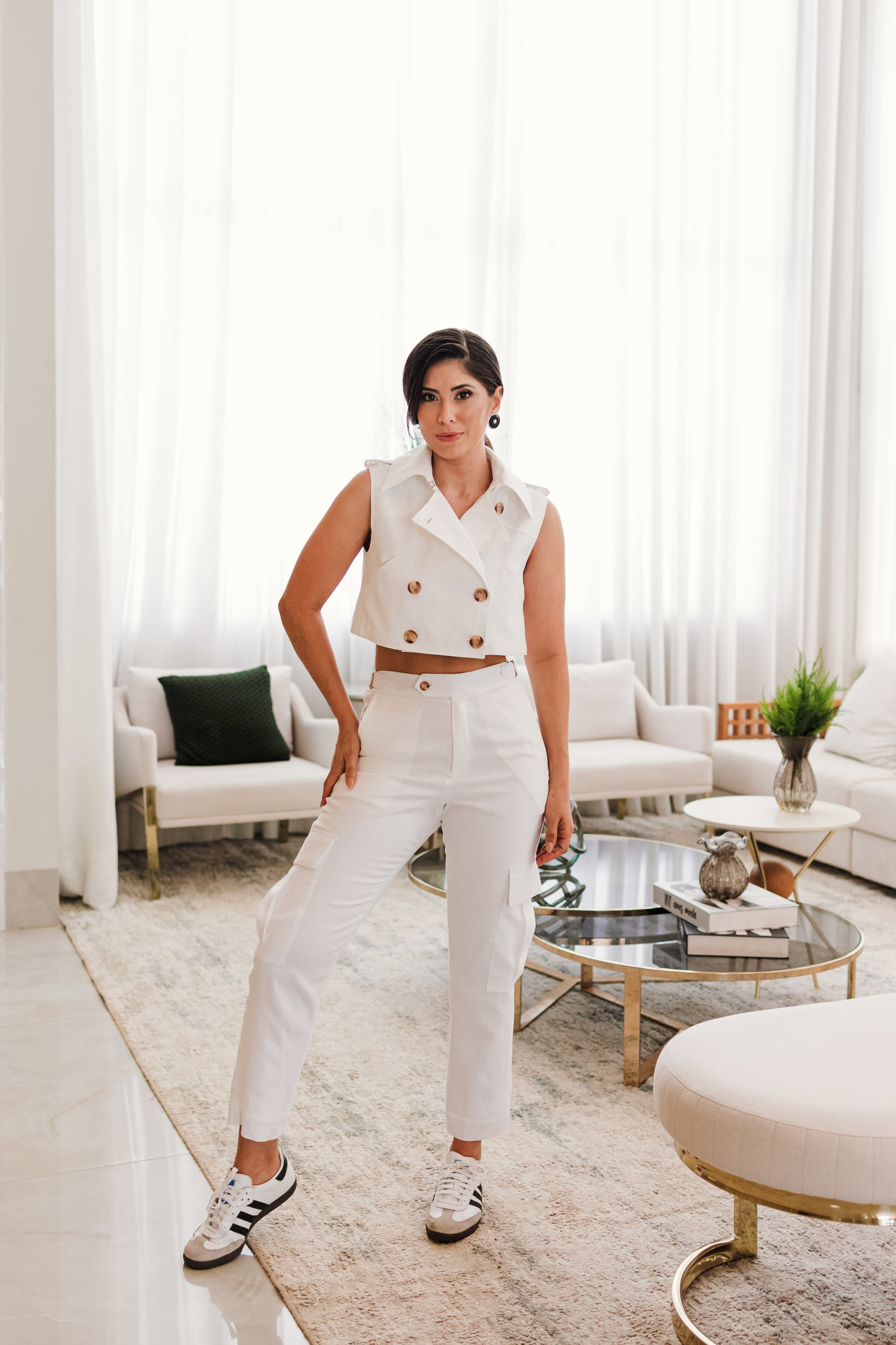 Colete de linho puro, rico em detalhes, com forro diferenciado.